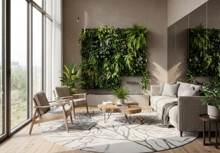 Третій рівень — це безпосереднє введення живої рослинності. Сучасні технології дозволяють створювати вертикальні сади з автоматичним поливом, які не займають корисної площі, але працюють як природні фільтри повітря. Рослини поглинають вуглекислий газ, виділяють кисень та підтримують оптимальну вологість. Проте біофілія — це також і використання фрактальних візерунків, які зустрічаються в природі (листя, сніжинки, мушлі). Доведено, що споглядання таких форм знижує рівень кортизолу в крові та допомагає зосередитися.