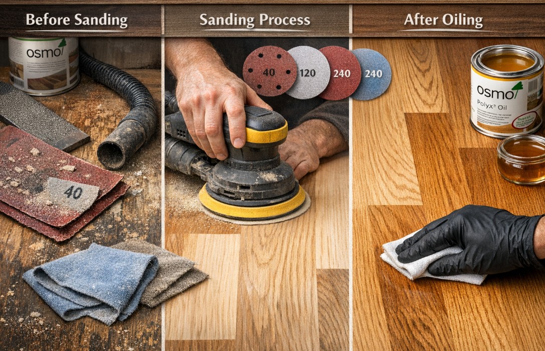 Шліфування деревини перед нанесенням олії, це один із найважливіших етапів підготовки поверхні, від якого безпосередньо залежить підсумковий результат. Незважаючи на простоту процесу, що здається, саме тут найчастіше допускаються помилки, які згодом призводять до нерівномірного вбирання олії, плям і зниження захисних властивостей покриття. Особливо це актуально, коли використовується якісна олія, наприклад OSMO, яка здатна розкрити текстуру деревини, але потребує правильної підготовки основи. Одна з найпоширеніших помилок – неправильний вибір зернистості абразиву. Багато хто починає відразу з дрібного шліфування, пропускаючи грубий етап, через що поверхня залишається нерівною, із залишками старого покриття або слідами обробки. В результаті олія лягає нерівномірно, підкреслюючи всі дефекти. Правильний підхід передбачає поетапне зниження зернистості, від грубої до дрібнішої, щоб досягти ідеально гладкої поверхні.