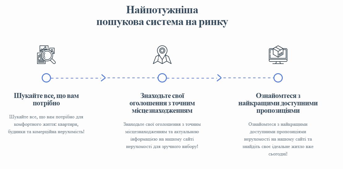 | Поиск и фильтры | Сортировка по релевантности, цене, районам города и количеству комнат. | Точный мониторинг рынка в конкретных локациях (Киев, Одесса и область). |