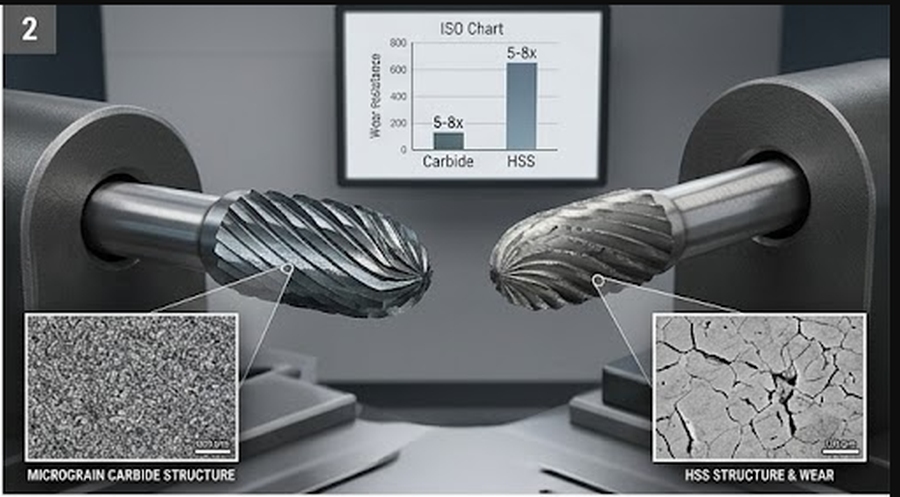 Современная борфреза по металлу в подавляющем большинстве случаев изготавливается из твердого сплава на основе карбида вольфрама. И это не случайность. По данным ISO (International Organization for Standardization), твердосплавные инструменты демонстрируют износостойкость в 5–8 раз выше по сравнению с быстрорежущей сталью (HSS).