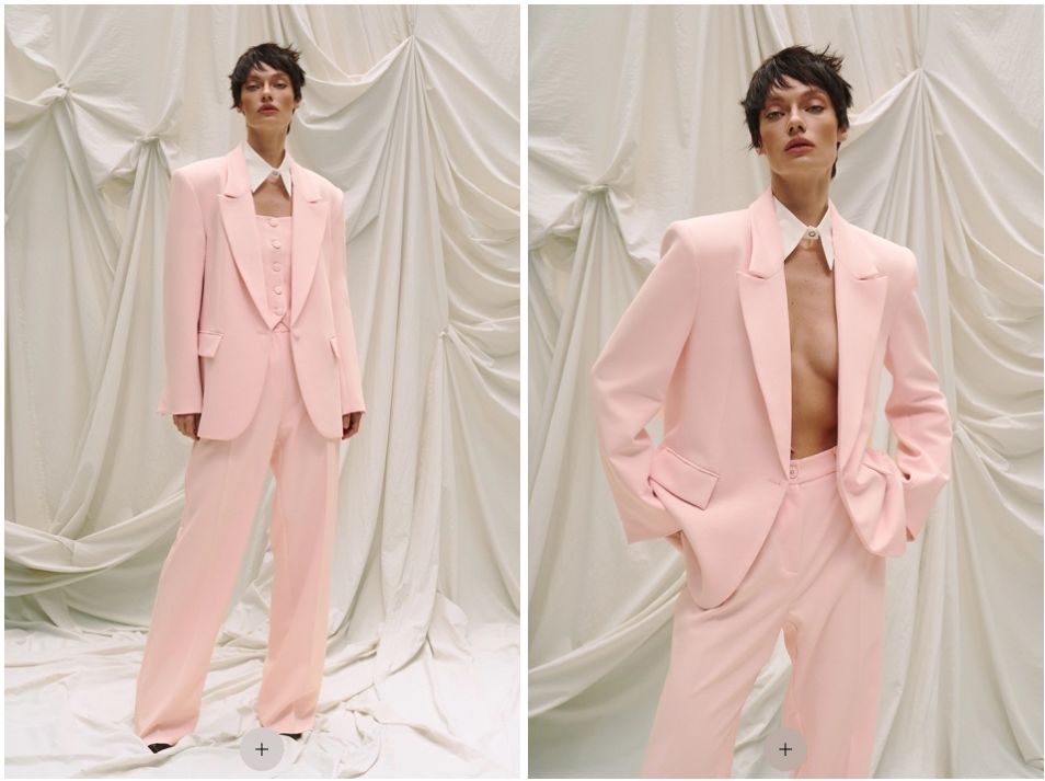 Бренд майстерно маніпулює цими контрастами, пропонуючи жінці свободу вибору між роллю залізної леді та витонченої спокусниці. Аналіз купівельних уподобань показує, що поєднання таких різних за характером речей у одній капсулі дозволяє закрити до 80% запитів гардероба на сезон. Висока посадка штанів у рожевому комплекті та акцентний крій комбінезона працюють на єдину мету — створення бездоганного силуету, який не потребує додаткових аксесуарів для того, щоб справляти враження.