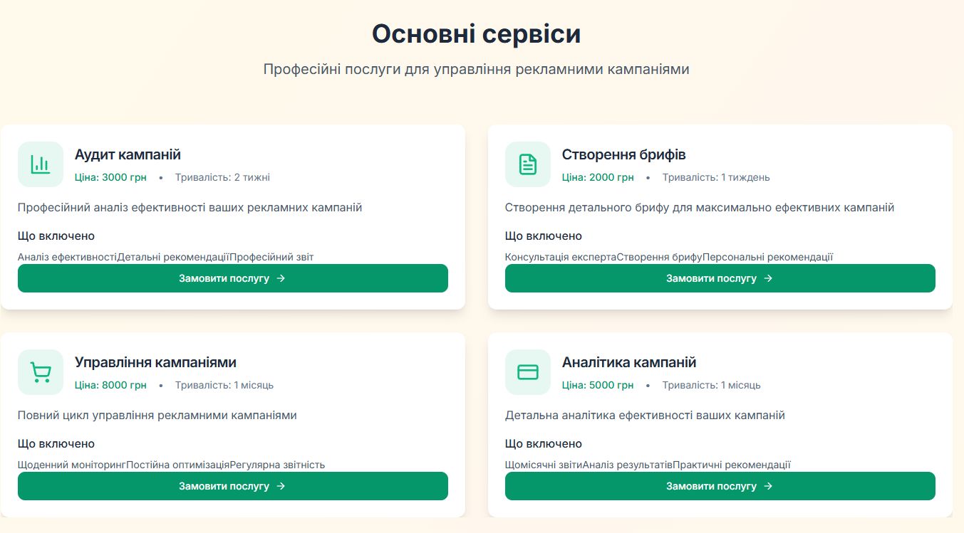 Підключення через Meta OAuth, оплата через LiqPay, контроль доступів, GDPR, шифрування, повна прозорість — усе це формує довіру до сервісу, у якому зручне налаштування реклами стає не просто технологічною функцією, а комфортом користувача.